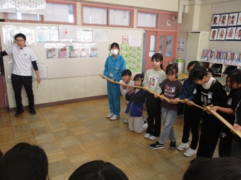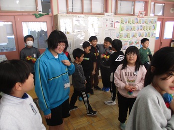 最初は、自己紹介をしてもらい、4年生の子たちと仲良くなりました。
