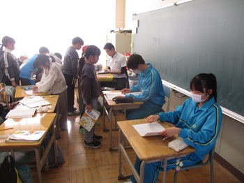 10月29日(水)今日から明日までの2日間、東中の2年生4名が、グッジョブで青潮小学校に来てくれました。今回は、主に4年生の教室で先生方のお手伝いをします。
