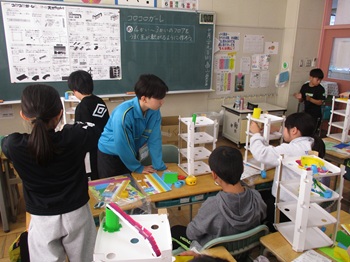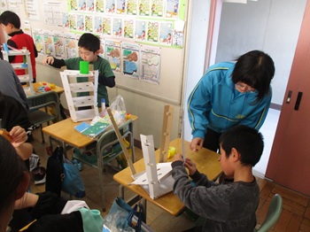 授業では、丸付けや図工のアドバイスをしてくれました。