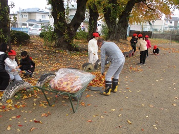 楽しんだあとは、用務員さんのお手伝いをがんばりました。