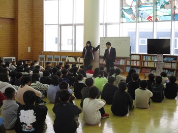 また、5年生は朝、学年集会を開いて、3学期の心構えを確認していました。