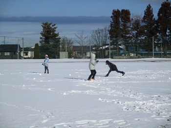 3年生以下の下学年はたくさん外で遊んでいましたが、4年生以上の上学年は、広い校庭を3人で遊んでいました。