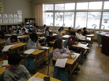 1月19日(木)今日の昼休みは、雪が降っていましたが、子どもたちは元気よく外で遊んでいました。写真を取り忘れてしまいました。すみません。5時間目の2年生の様子をご覧ください。