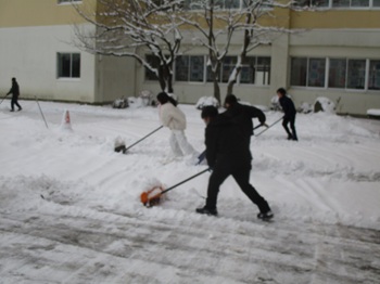 1月20日(火)今朝は、久しぶりに雪景色になりました。朝早く登校してきた6年生が、自主的に雪かきをがんばってくれました。