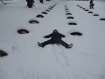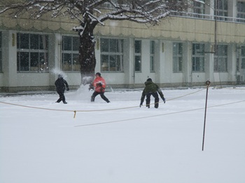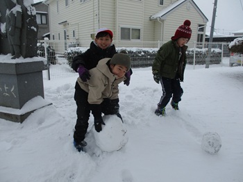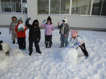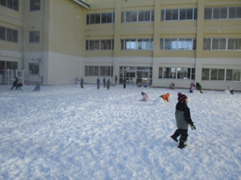 たくさん雪が積もったので、休み時間はみんなで雪遊びです。