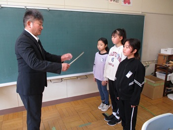 次に校長先生へ、朝のあいさつです。