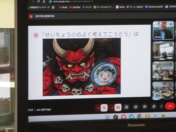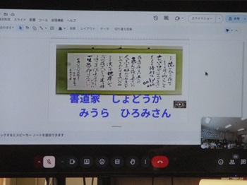 青潮小学校にたくさんの書を寄附してくださっている三浦ひろみ先生のお話でした。