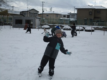 2月9日(月)今日の昼休み、子どもたちは張り切って外で雪遊びをしました。