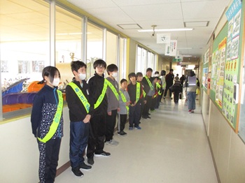 金曜日の朝は、生活委員会のみなさんがあいさつ運動をしています。本当にさわやかな声が響き渡ります。