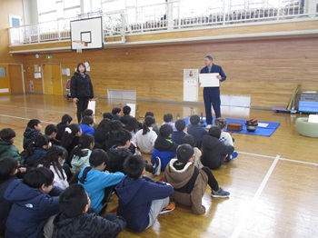 2月26日(木)今日は、県立郷土館の先生方がお見えになって、3年生に昔の道具や生活についてお話をしてくださいました。