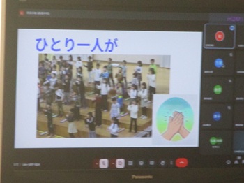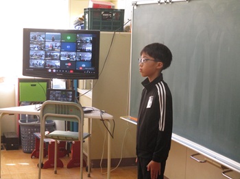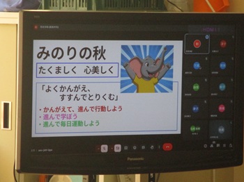 11月4日(火)今朝の全校朝会は校長先生のお話でした。まずは、いつも全校朝会を運営している計画委員さんのあいさつです。