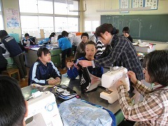 月曜日,火曜日,金曜日の3日間で計画的にミシンを使って学習を進めます。一度に20台近いミシンを使うことになるので,保護者ボランティアのみなさんの協力をいただき,子どもたちが困ったり,ミシンの調子が悪くなったりした時に,支援してくださいます。
