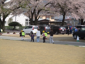 4月25日(金)今日は、1年生の引き渡し下校訓練が行われました。その前に、昼休みの様子を少しだけご覧ください。1年生は元気に芝生で遊びました。
