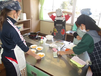 6年調理実習(野菜炒め)