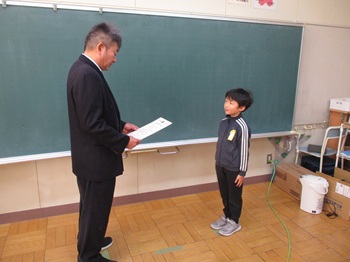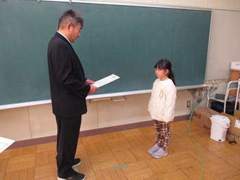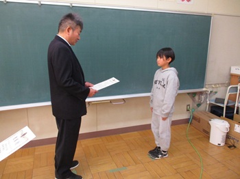 3年生の部も2名が入賞しましたが、本日は1名欠席のため1名だけの表彰です。