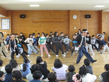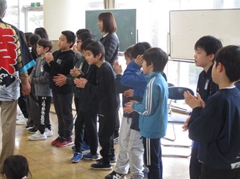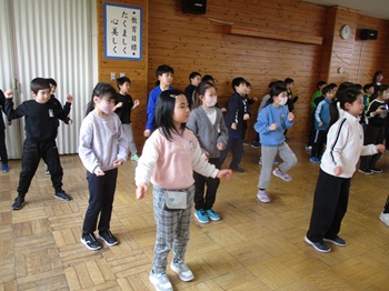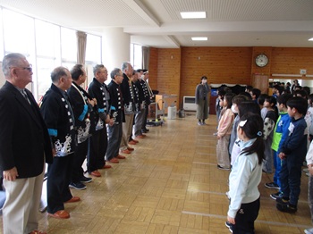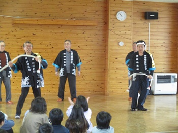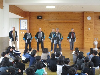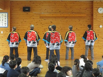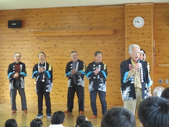 3月3日(火)今日は、湊沖揚音頭保存会男組のみなさんが3年生に沖揚音頭を教えに来てくれました。