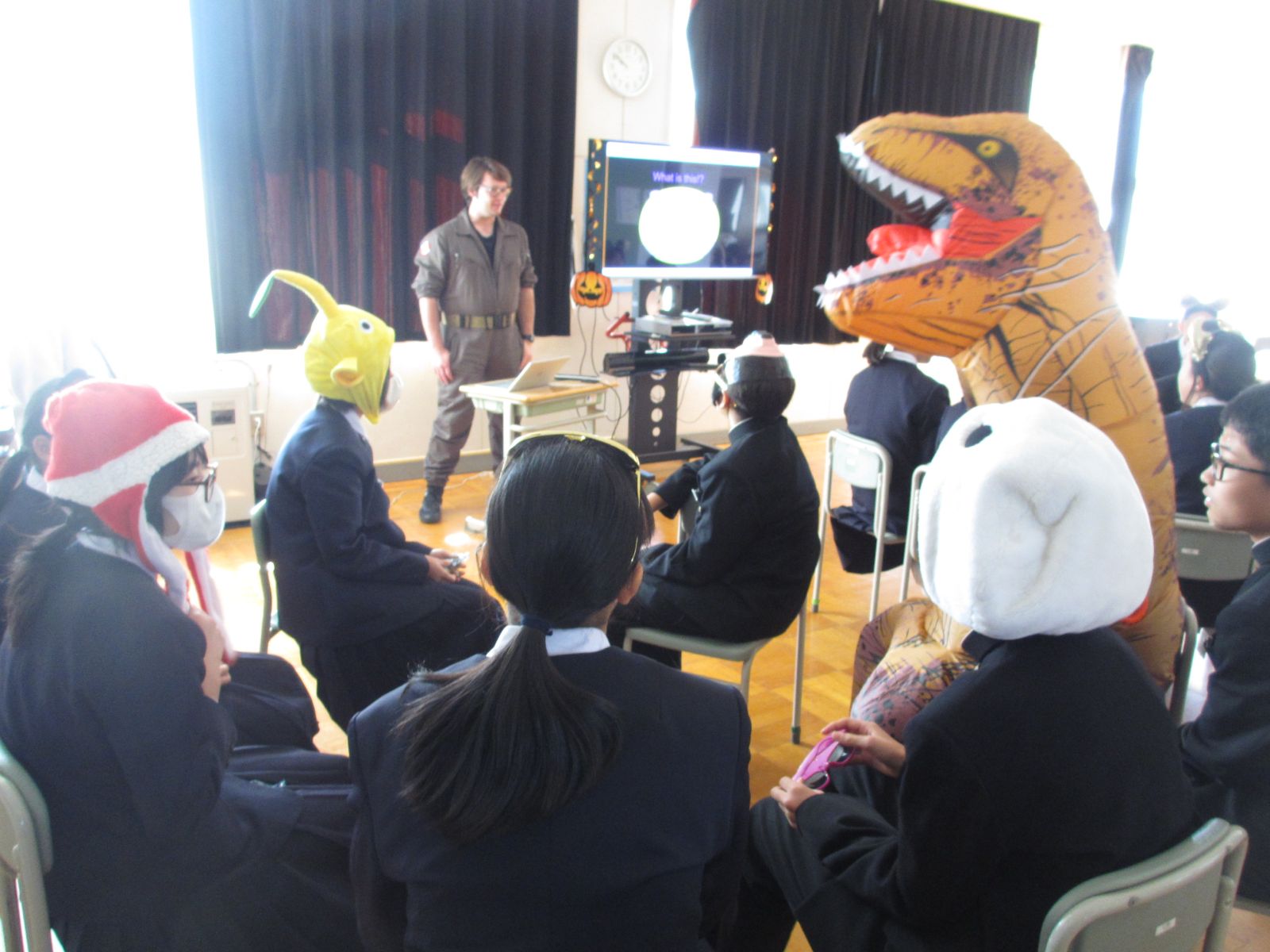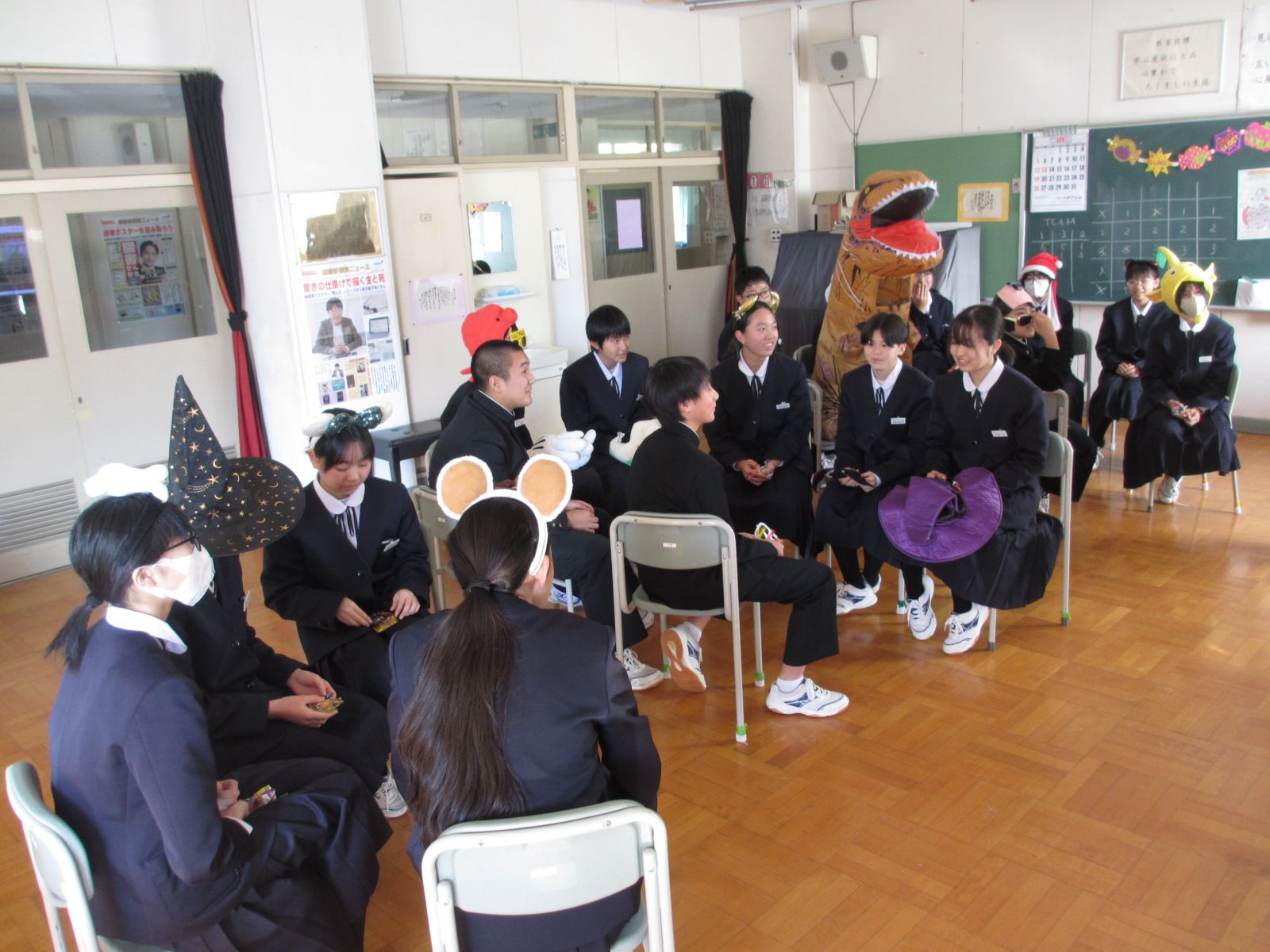 各自、自前の被り物をかぶり、全校で楽しんで授業に取り組んでいました。
