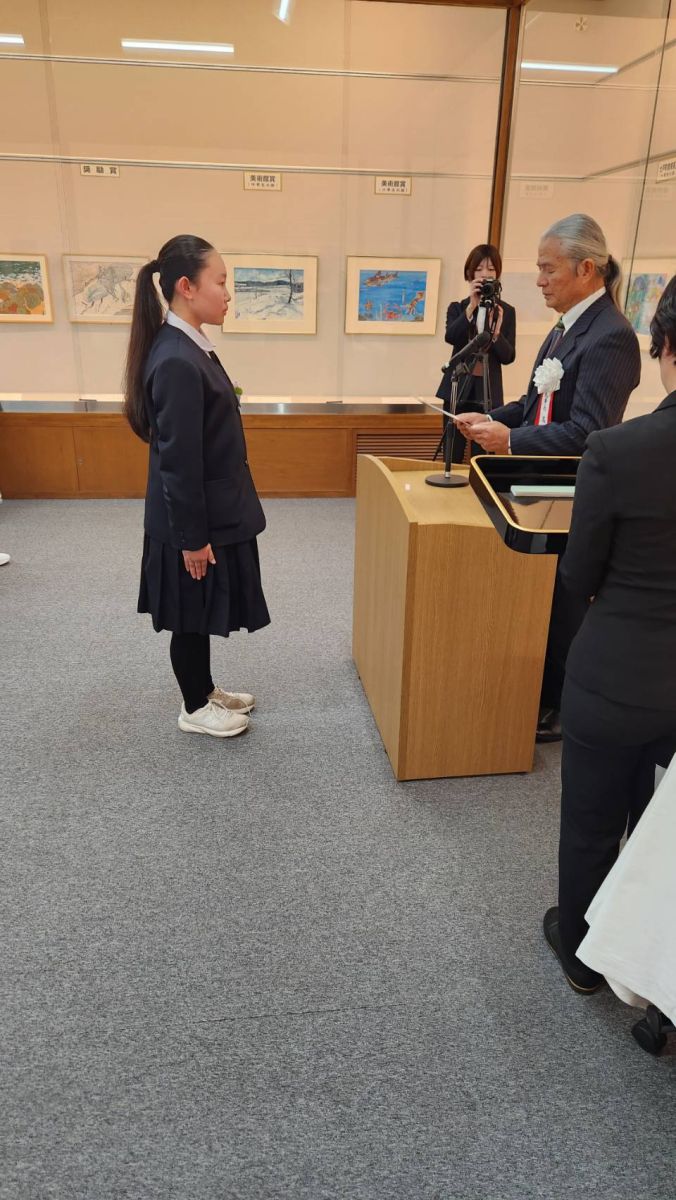 本校は3作品入賞。美術館賞を受賞した生徒が出席しました。