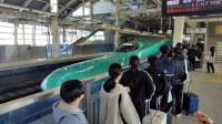 朝は、まだ肌寒く八戸駅では上着を羽織っている生徒が多いです。