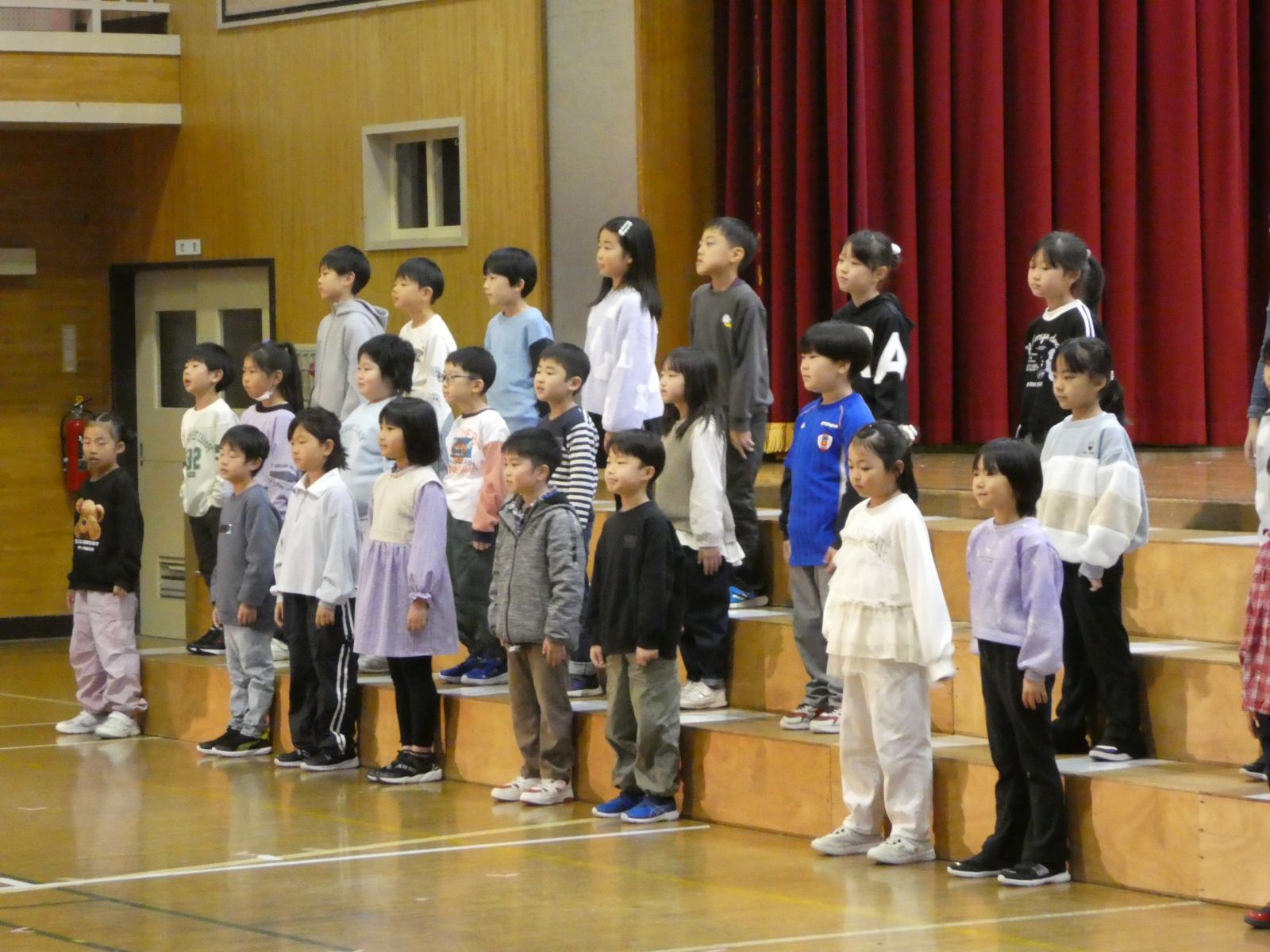 次は2年生の合唱、ダンス『みんなしあわせになあれ』でした。きれいな歌声で歌ったり、自分の名前に込められた想いを元気に発表したりできました。最後は楽しいダンスで会場の皆さんを楽しませていました。