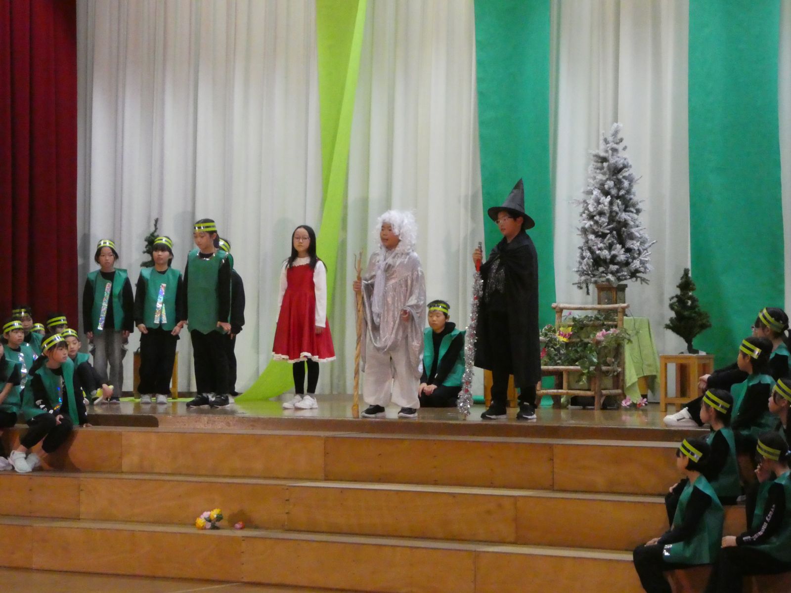 次は4年生の劇『守りたいもの』でした。森を開発したい人間たちと森を守りたい妖精たちを一生懸命演じていました。子どもたちの演技と照明や舞台が一体となって、話に引き込まれる発表でした。