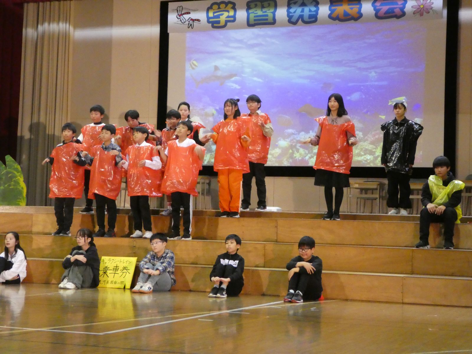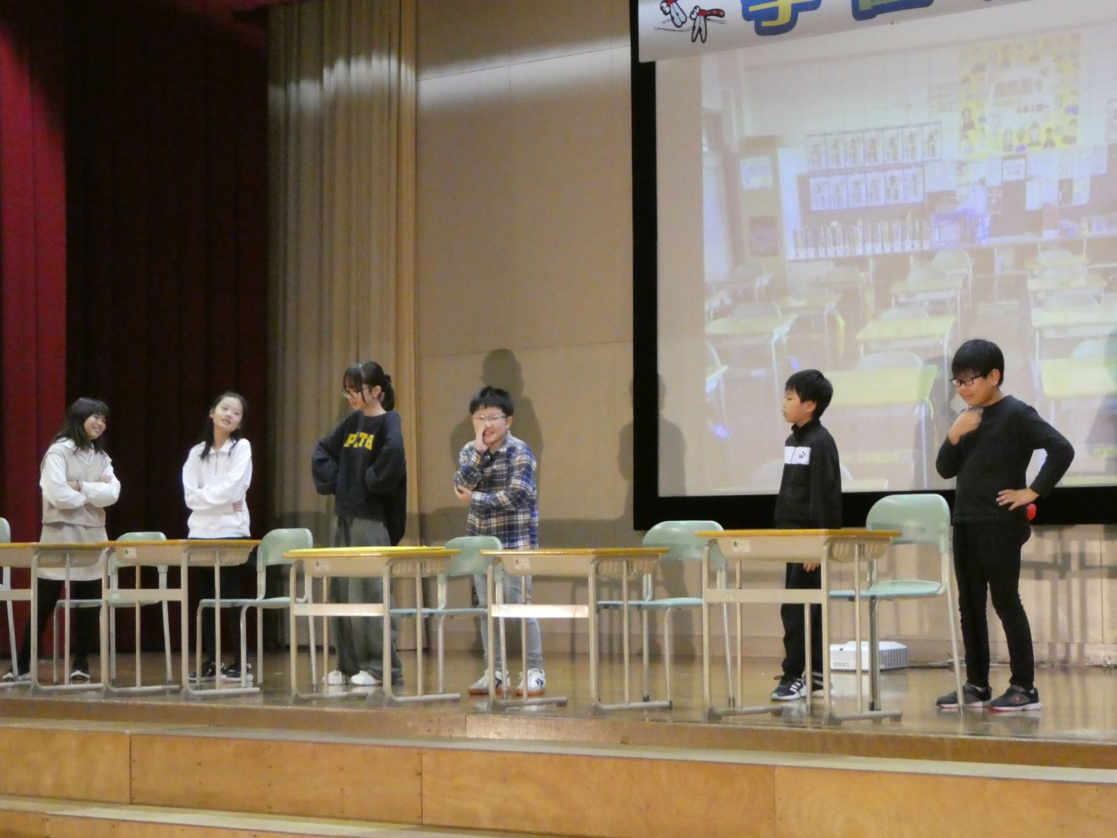 最後は6年生の劇『ギャラクシー トレイン(仮)』でした。これまで6年間の出来事を。1年生から順に劇にして発表しました。6年生の演技と、背景として映した映像がとても良く、これまでの思い出がよく伝わってきました。