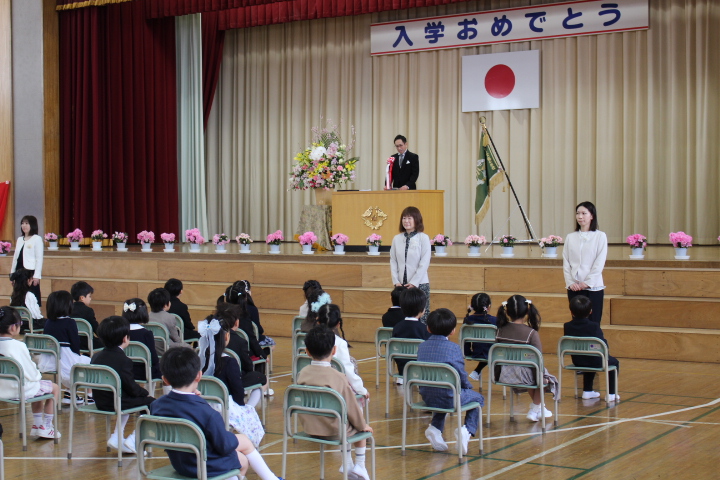 今年度の新入生は54名です。小学校の入学式に参加し、緊張している様子が見られましたが、校長先生のお話を落ち着いて最後まで聞くことができました。担任の先生方の紹介もありました。