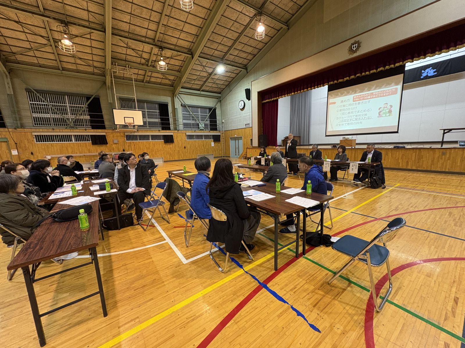 地域の方々と学区の小中学校の関係者が集まり、話し合いを行いました。