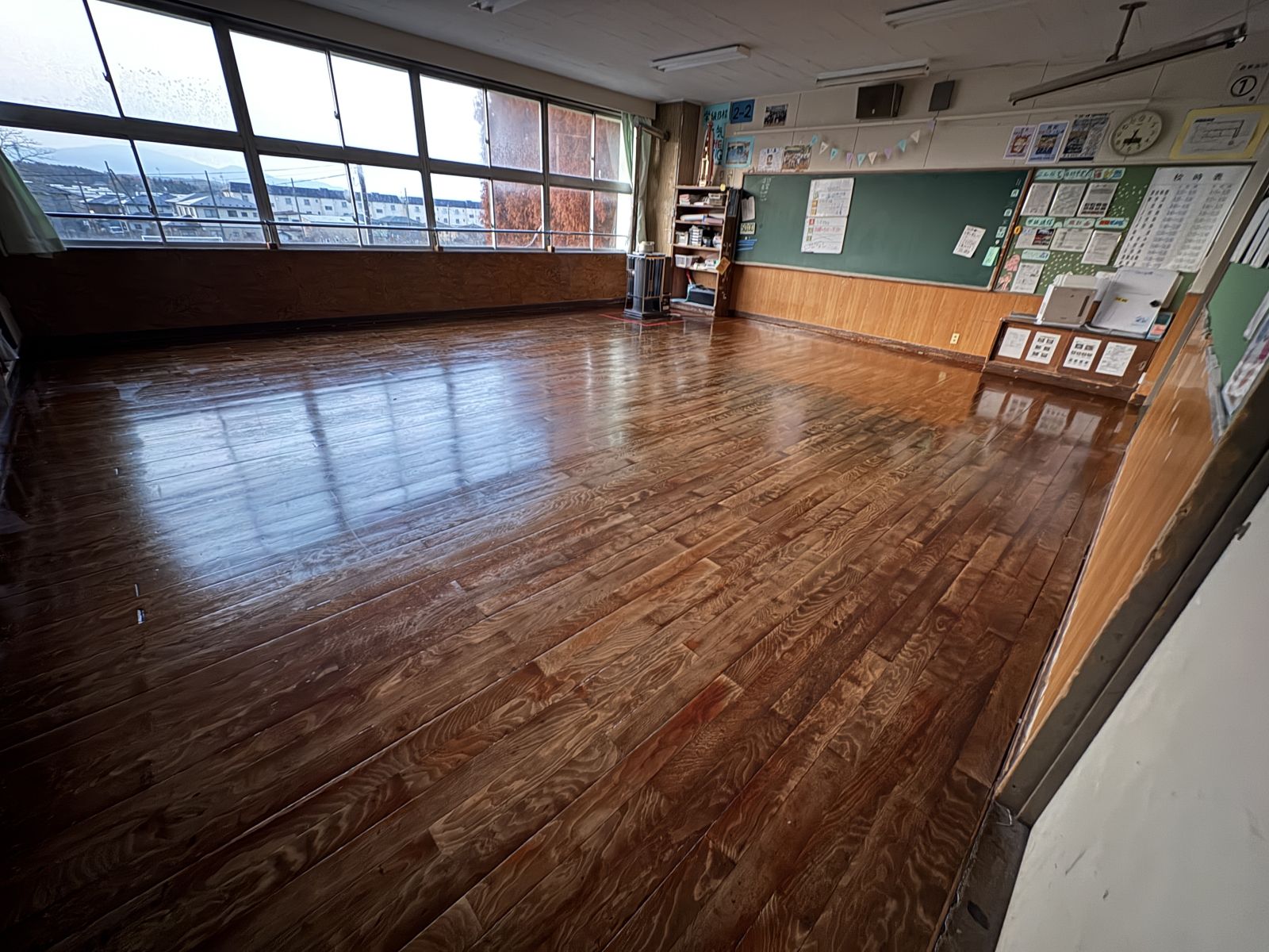 環境委員会によるワックスがけが行われました。教室の床がとてもきれいになりました。