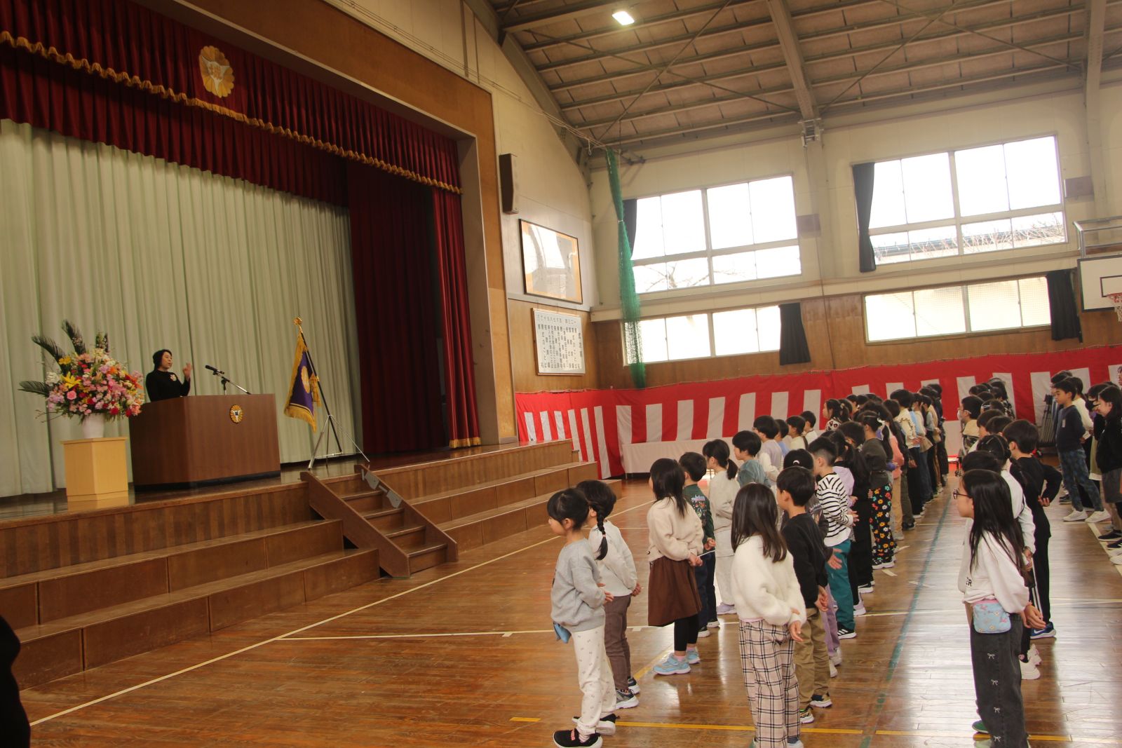 4月7日(火)、始業式を行い、令和8年度、創立52年目がスタートしました。年度末11名の転出がありましたが、転入は1名です。全校児童257名になりました。