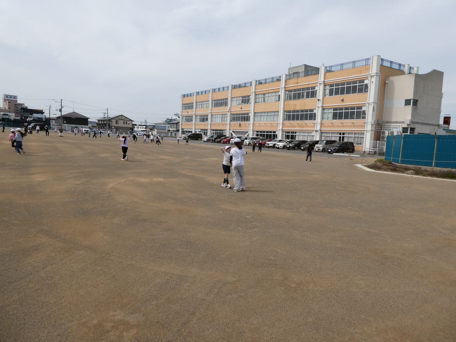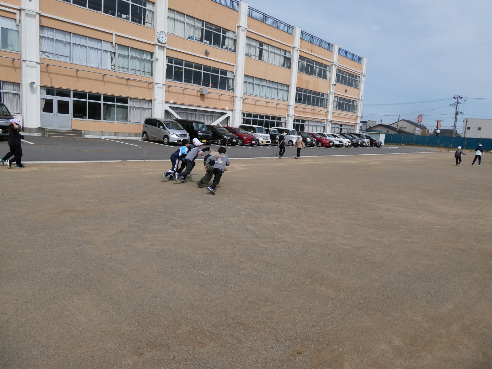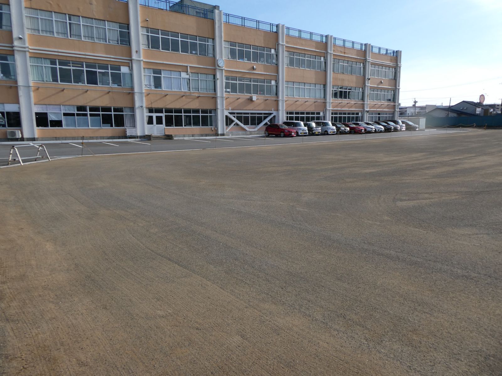 4月8日(水)、校庭に重機がはいり、校庭整地を行いました。翌9日(木)の昼休みには、きれいに整地された校庭で遊ぶことができました。