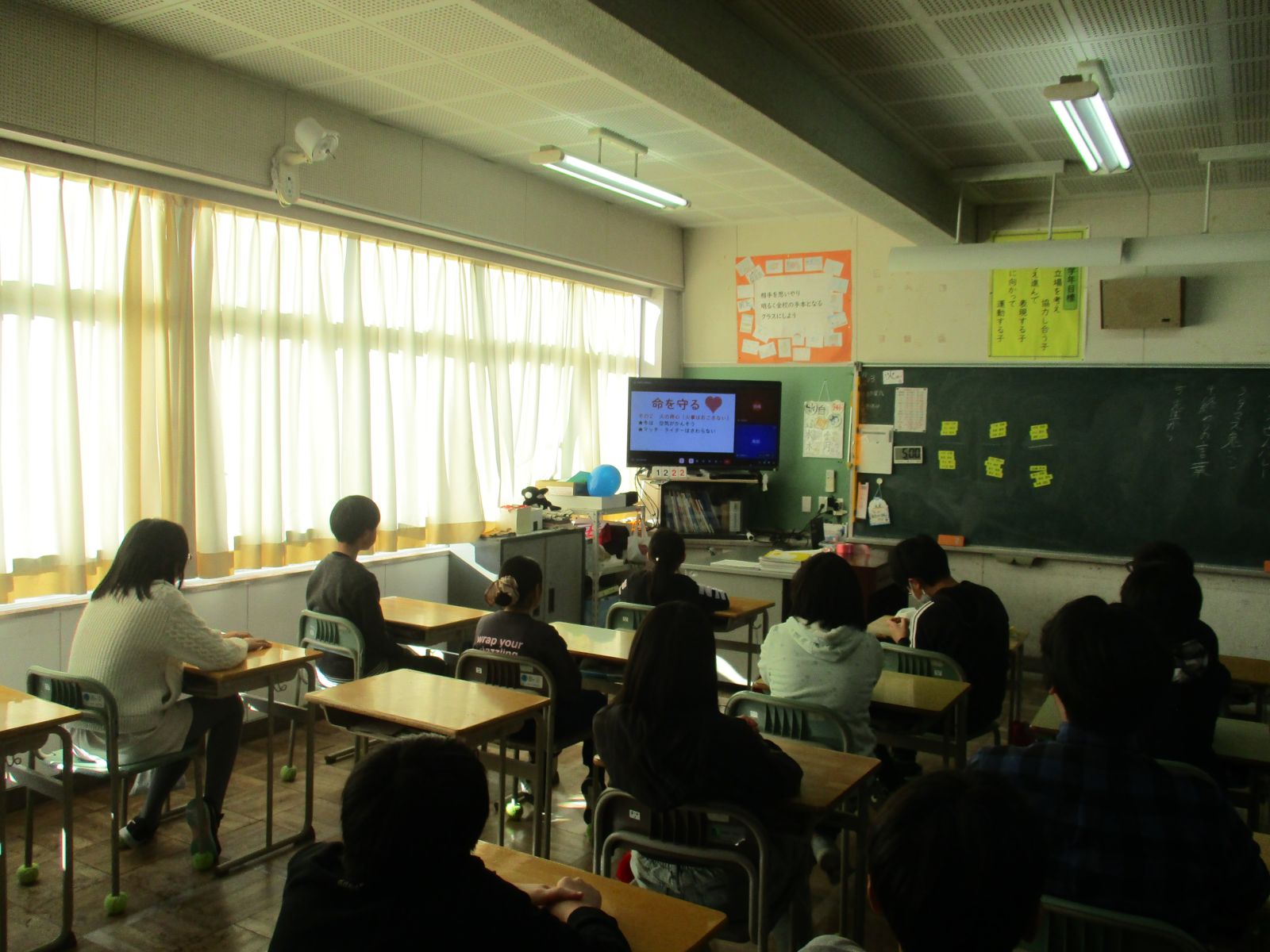 終了後、冬休みの生活指導と賞状伝達を行いました。今回は、都市ガス安全指導に関する「習字・ポスター展」ポスターの部、明るい選挙啓発ポスターコンクールに入賞した5名へ賞状を伝達しました。