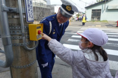 信号機のない横断歩道、バス停付近の少し複雑な横断歩道、押しボタン式信号機のある横断歩道。学校の周辺には様々な横断歩道があります。楽しい学校生活を送るためにも、折に触れ、これからも交通安全について学んでいきます。