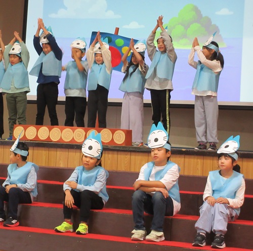 学習発表会本番に向けて精一杯練習してきた子供たち。発表を終え、緊張から解き放たれた解放感とやり切った達成感とで充実した表情を見せていました。