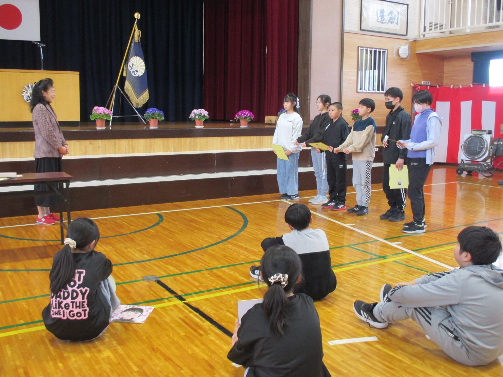受け取った6年生は、みんな嬉しそうな恥ずかしそうな