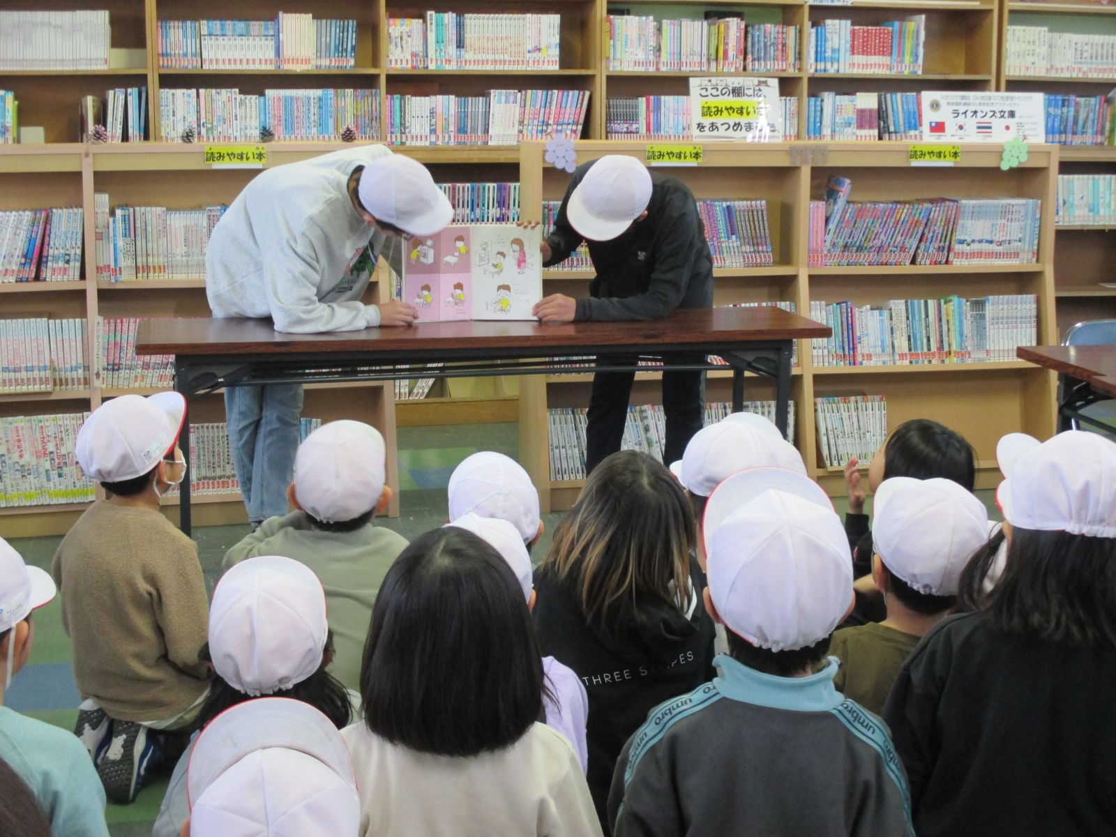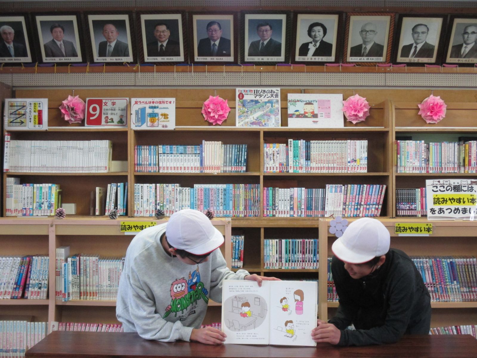昼休みに図書室で図書委員会による昼の読み聞かせが