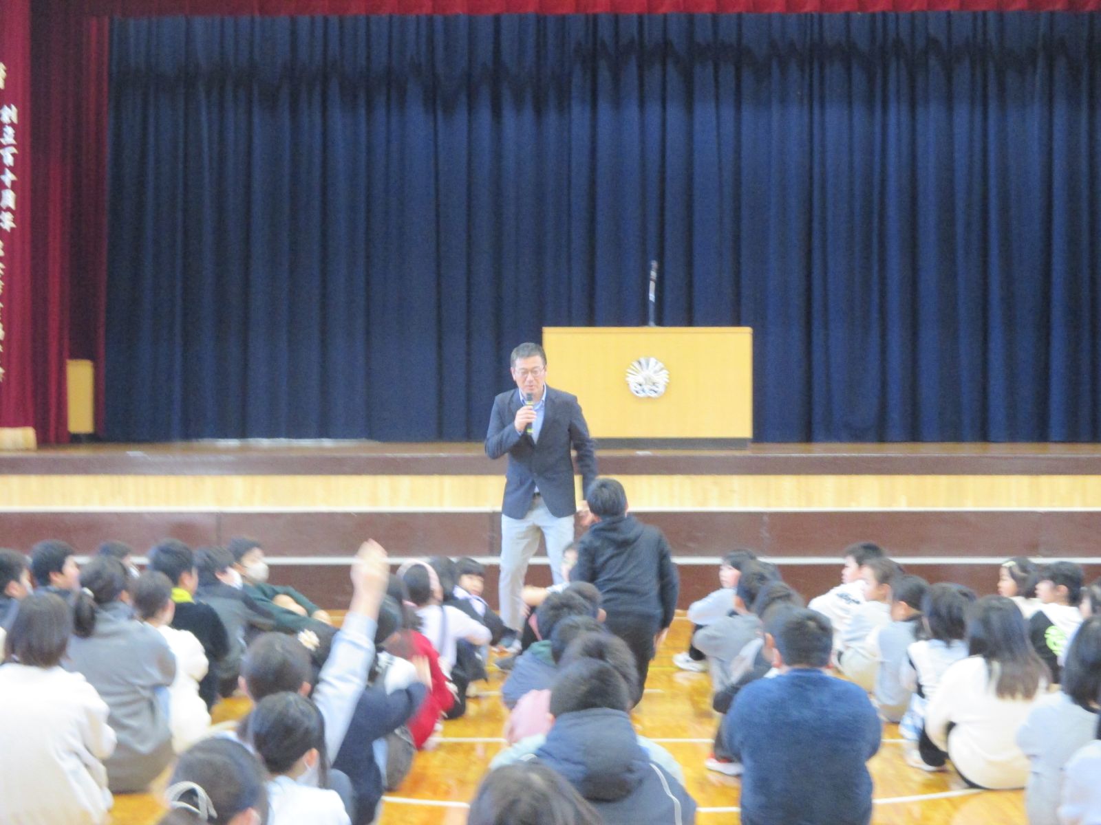 生徒指導主任は、全校児童に2学期の生活や冬休み中