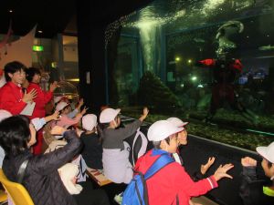 その後、マリエント内を見学しました。エサやりも見せてもらいました。