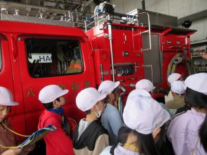 「消防署」では、消防車や通信指令室等を見せてもらいました。