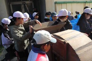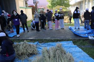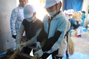 その後唐箕でわら等を吹き飛ばしました。昔の人は様々な工夫や努力、苦労をしながらお米を作っていたことを実感できました。ボランティアの皆様、ありがとうございました。