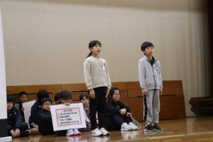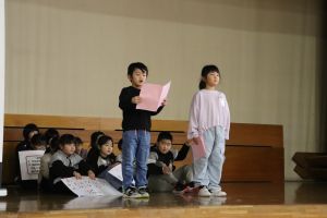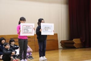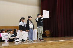 各学年の代表者が、自分たちで取り組んでいることについて発表しました。