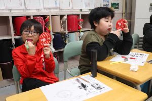 給食後の歯磨きがきちんとできたかをカラーテスターを使って調べました。