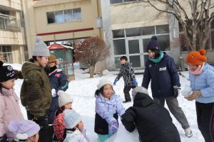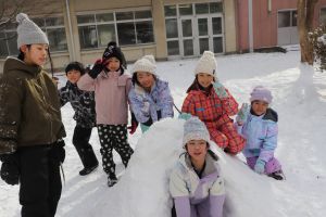 気温はマイナス6度、でも子どもたちは元気です。