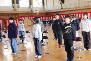 3月16日 卒業式の練習が在校生も入れてスタートしました。