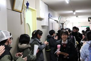 見送りでは、在校生からたくさんの拍手を受け惜しまれながら学校を去っていきました。
