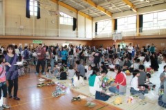参観日のあと、11時30分からはバザーが開催されました。まりこラーメン、相馬食堂には長い行列ができていました。