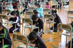 本校が2年前から始めた計算コンテスト、今年で3回目になりました。2時間目が低学年、3時間目が高学年と分けて体育館で行いました。静かに10分間、よく集中して取り組んでいました。