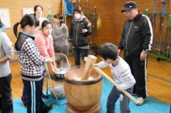 昨日の日曜日、子ども会の収穫祭が本校体育館で行われました。春の苗代づくりから始まり、田植え、稲刈りと自分たちが一年間育ててきた餅米を自分たちがついて食べるお餅の味は格別だったことでしょう。子どもたちもたくさん参加して大盛況でした。準備にあたった地域の方々、大変お疲れ様でした。ありがとうございました。地域のみなさんに温かく見守られて育っていく子どもたちは幸せです。