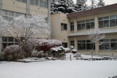 昨日からこの八戸にも雪が降り出しました。今朝学校に来てみると、中庭の樹木にも雪がついていて、きれいに雪化粧していました。登下校の際には、雪遊びをしないように。それから、滑らないように気をつけましょう。
