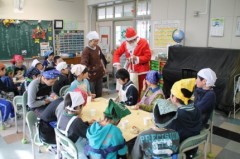 本校のつきの木・あじさい学級が城北小学校の友だちを招いてクリスマス会を行いました。そこにサンタクロースが登場して、みんなにプレゼントをあげました。みんな大喜びでした。